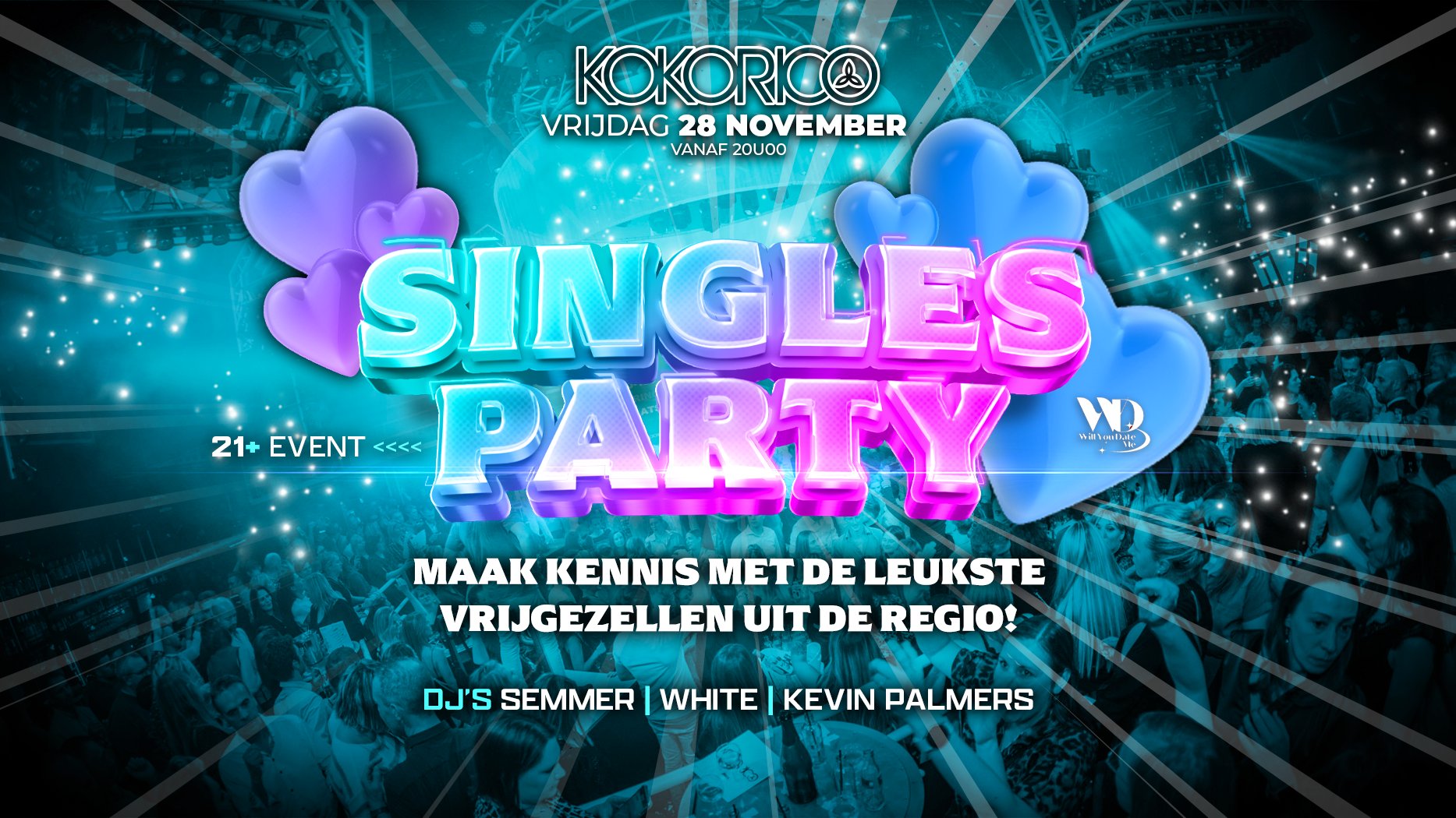 Dé singles party van het jaar vindt plaats op vrijdag 28 november! Op deze avond wordt de hele Booty Room (bovenzaal Kokorioco) gevuld met alleen maar leuke en knappe singles van alle leeftijden! Connect & match in real life. Ben jij er ook klaar voor om het single bestaan vaarwel te zeggen? Dan mag jij op hét singles event van 2025 niet ontbreken! Een gratis consumptie, de beste allround deejays, foodtruck met heel wat lekkers en vooral heel veel vrijgezellen, dat is het recept van onze Singles Party. Find your perfect match… or enjoy an imperfect one! 21+ event. Men moet minstens 21 jaar oud zijn om toegang te kunnen krijgen. Deuren open om 20:00 tot 03:00. Foodtruck aanwezig vanaf 20:00. In ieder ticket zit 1 welkomstdrankje inbegrepen.